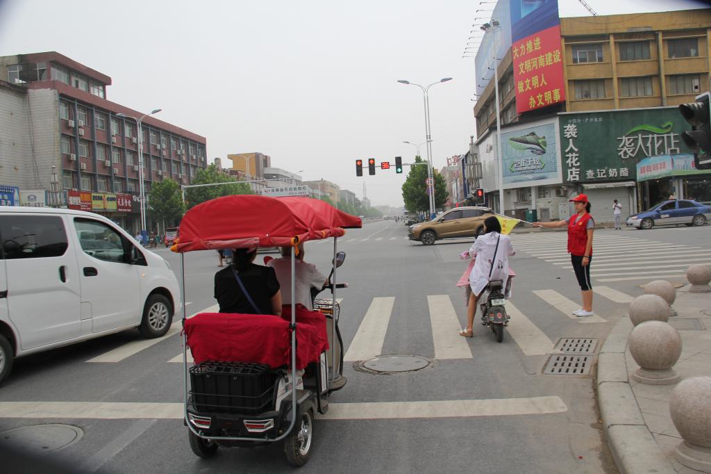 为深化文明城市建设,提升城市文明程度,为保证市民的正常出行,6月23日,滑县中心医院组织青年志愿者共计4人,在红绿灯路口开展文明出行劝导活动。对行人闯红灯、乱穿马路、随地吐痰、乱扔垃圾、非机动车逆行、违规载客、乱停乱放占用盲道等不文明行为进行劝导;对乘车拥挤、不排队、不谦让老人、妇女、儿童等不文明行为进行劝导,引导居民相互礼让、排队上车、遵守公共交通秩序。为市民营造良好的交通氛围。