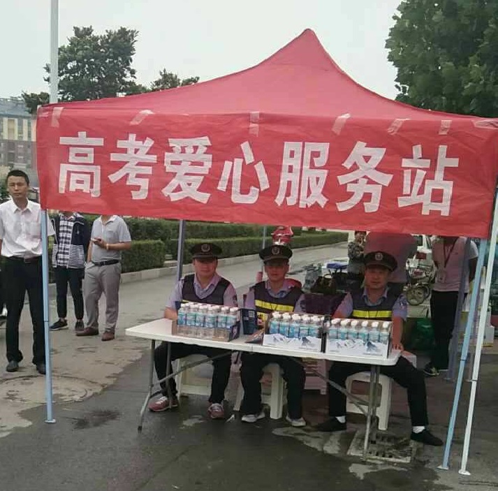 高考期间,滑县城市管理综合执法局在加强辖区各考点周边环境秩序保障工作的同时,在4个高考考场周边设置高考爱心志愿服务站,免费医疗箱、备有饮料、休息区、风油精等防暑降温药品、考试2b铅笔、钢笔、橡皮等便民应急物资,为广大考生及家长提供便捷服务。同时承诺高考期间,全县城管执法系统所有巡查车辆凡发现高考考生有搭乘需要的,要无条件提供力所能及的帮助。