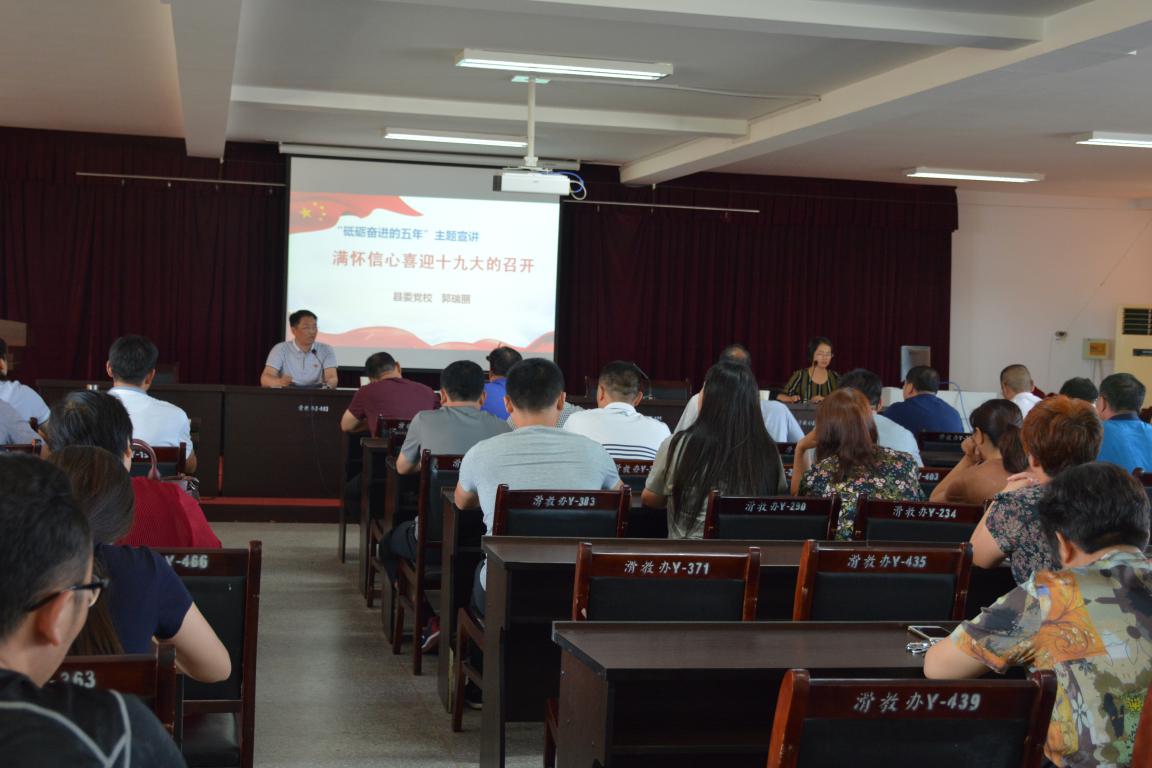 8月23日下午,教体局举行“迎接十九大”宣讲专题报告会,县委党校讲师郭瑞丽作专场报告,活动由教体局党组副书记李振君同志主持,教体局82名干部职工参加了学习活动。