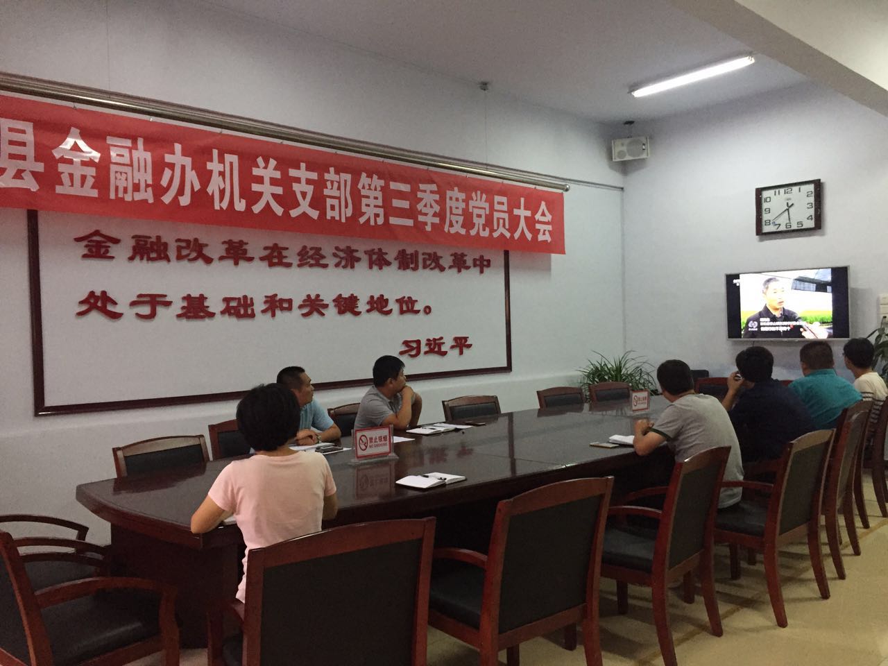 9月5日,县金融办组织召开机关支部第三季度党员大会。