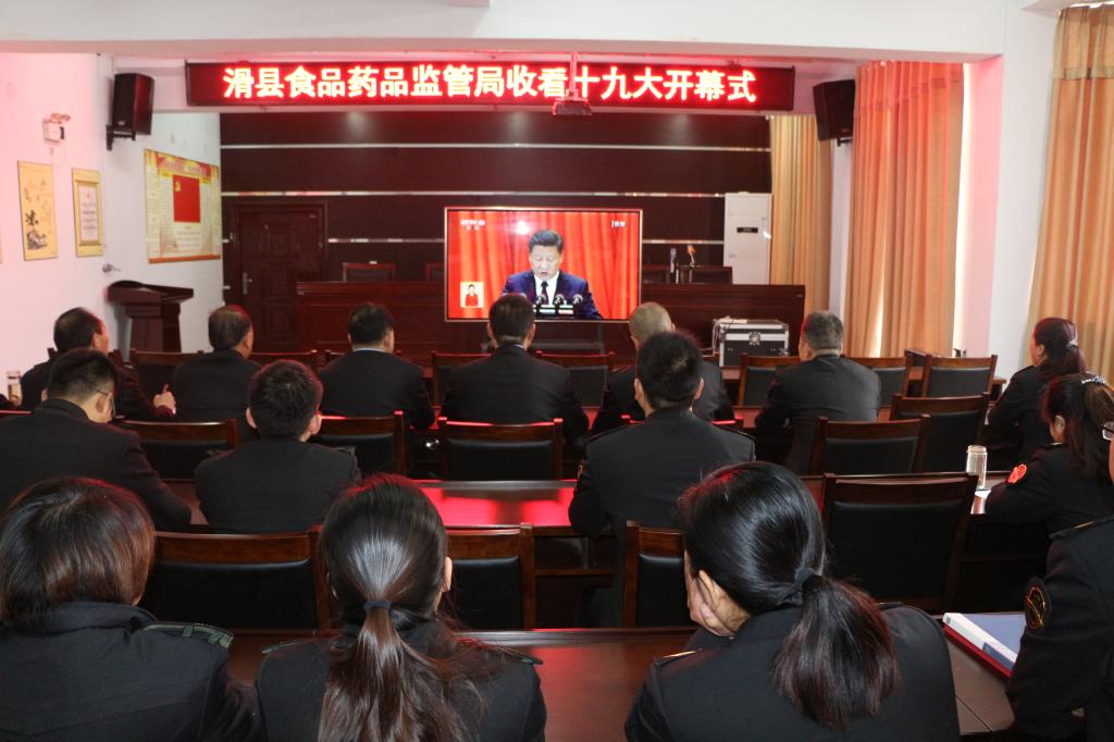 10月18日上午,县食药监局组织机关全体人员在局四楼会议室集中收看了党的十九大开幕会,同志们认真听、仔细记、深刻领会大会精神。会后,大家表示,一定认真学习报告精神,切实增强四种意识,坚决拥护以习近平同志为核心的党中央的领导。