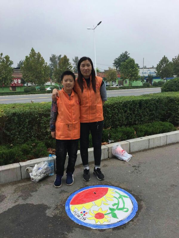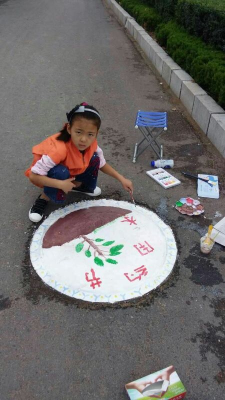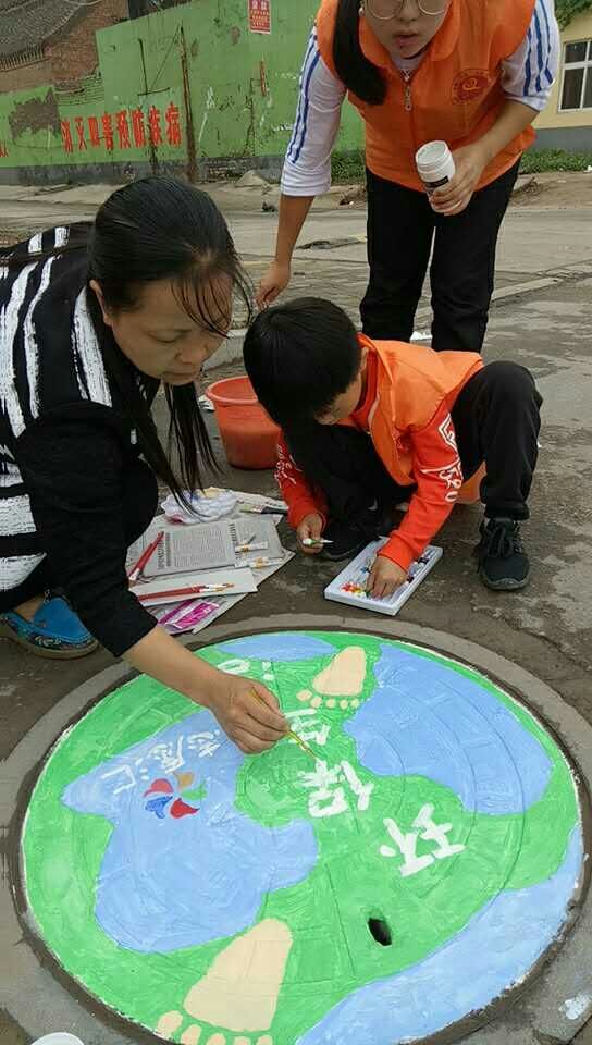 在滑县中州路东段活动现场,孩子们和老师以窨井盖为纸,用缤纷的色彩绘出一幅幅美丽的图画。作品有的表达了对伟大祖国的美好祝福,有的宣传了节能、环保、绿色的生活理念。