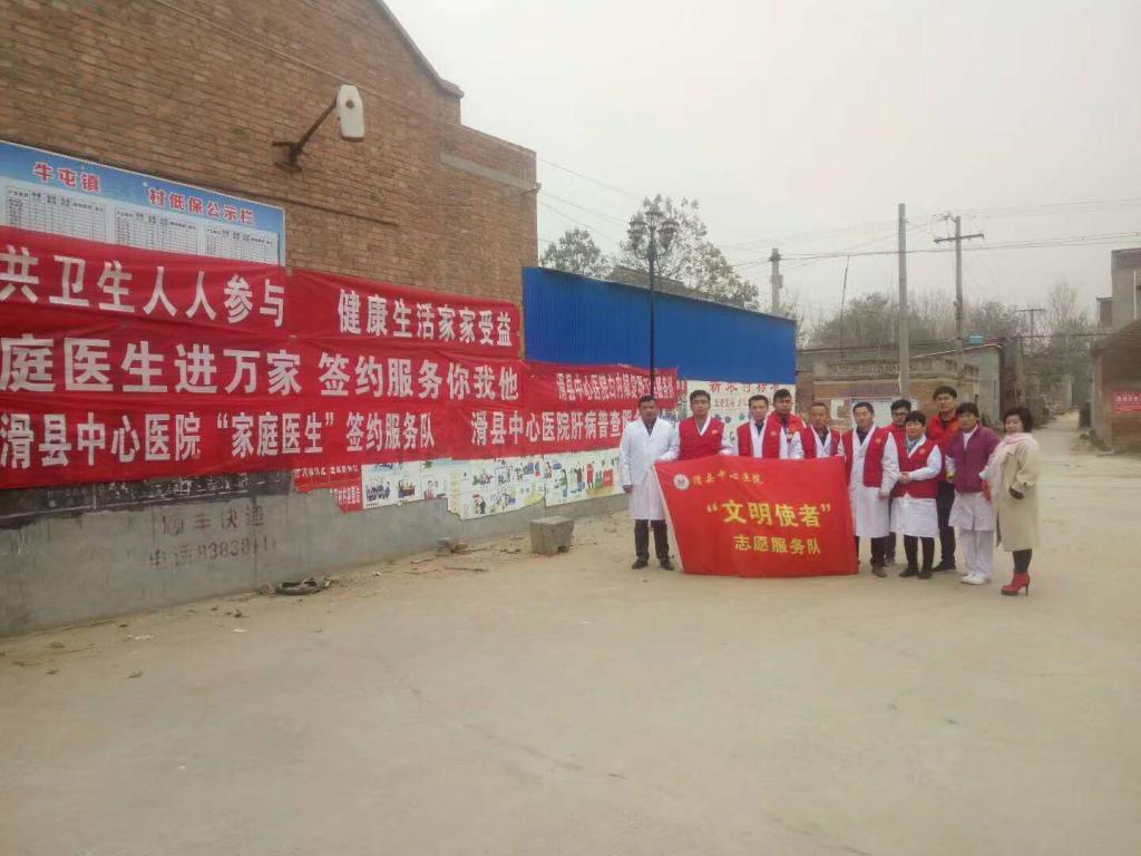 为深入推进家庭医生签约服务工作,提高群众对家庭医生签约服务的知晓率,11月16日,滑县中心医院志愿者及相关医务人员,围绕“家庭医生进万家签约服务你我他”的活动主题,在牛屯镇马居寨村开展家庭医生签约工作。