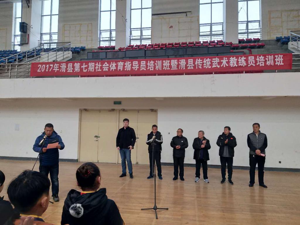 12月9日,滑县第七期社会体育指导员及传统武术教练员培训班在综合健身馆举行,教体局体卫艺办公室相关人员和国家非物质文化遗产心意六合拳代表性传承人、中国武术八段李洳波老师,国家非物质文化遗产八极拳代表性传承人、中国武术六段马德行老师,南召武术协会主席、中国武术六段赵峰老师等人参加了开幕式。