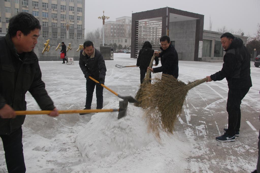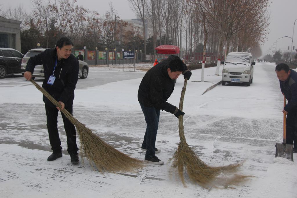 1月4日,我县迎来了入冬以来的第一场中雪。积雪给道口古镇添上了魅力的同时,也给出行的人们和车辆带来了不便和安全隐患。县国土局组织人员拿起铁锹、扫帚,清扫国土局附近路段的积雪。