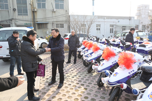 为积极推进司法行政工作更好地服务基层,提高工作效率,充分发挥司法行政在维护基层社会稳定中的职能作用,多渠道解除基层司法行政工作之忧,推动司法行政工作有效开展。春节前夕,县司法局在机关大院举行了警用电动车发放仪式,参加仪式的有局领导班子成员以及机关全体干部职工、司法所所长共计60余人。