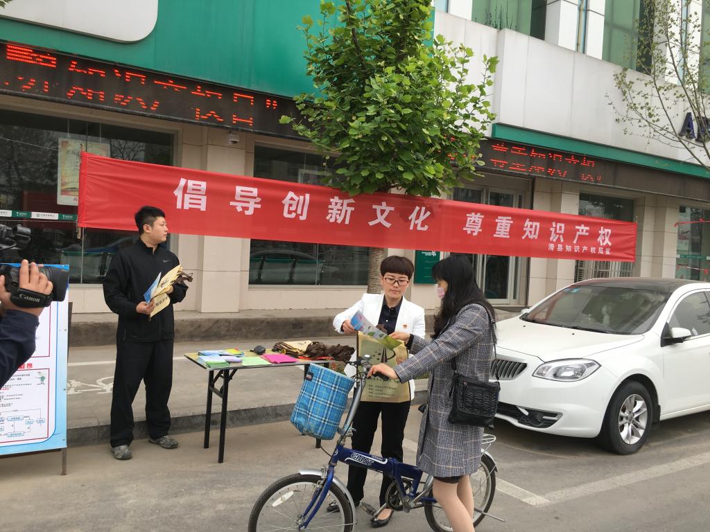 在第18个世界知识产权日到来之际,滑县科技局于4月26日上午在滑县中州大道中段开展集中宣传服务活动。