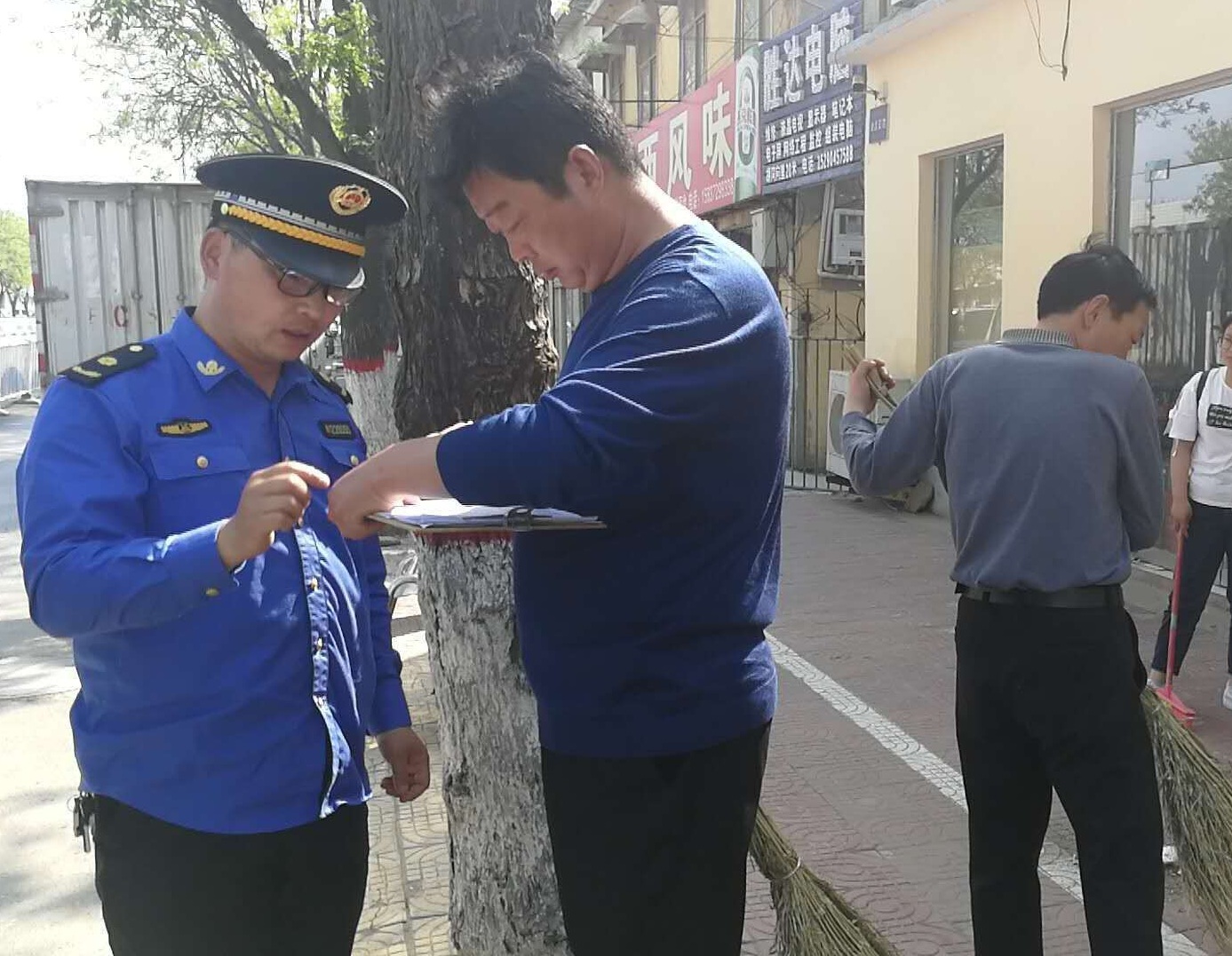 广泛宣传,增强市民的文明意识。针对人口密集,店铺较多的路段,队员们主动上门向市民宣传相关城市管理相关法律法规,强化停放点和商铺的“门前三包”责任制意识,印制并发放通知宣传页,引导广大市民自觉遵守城市管理规定。