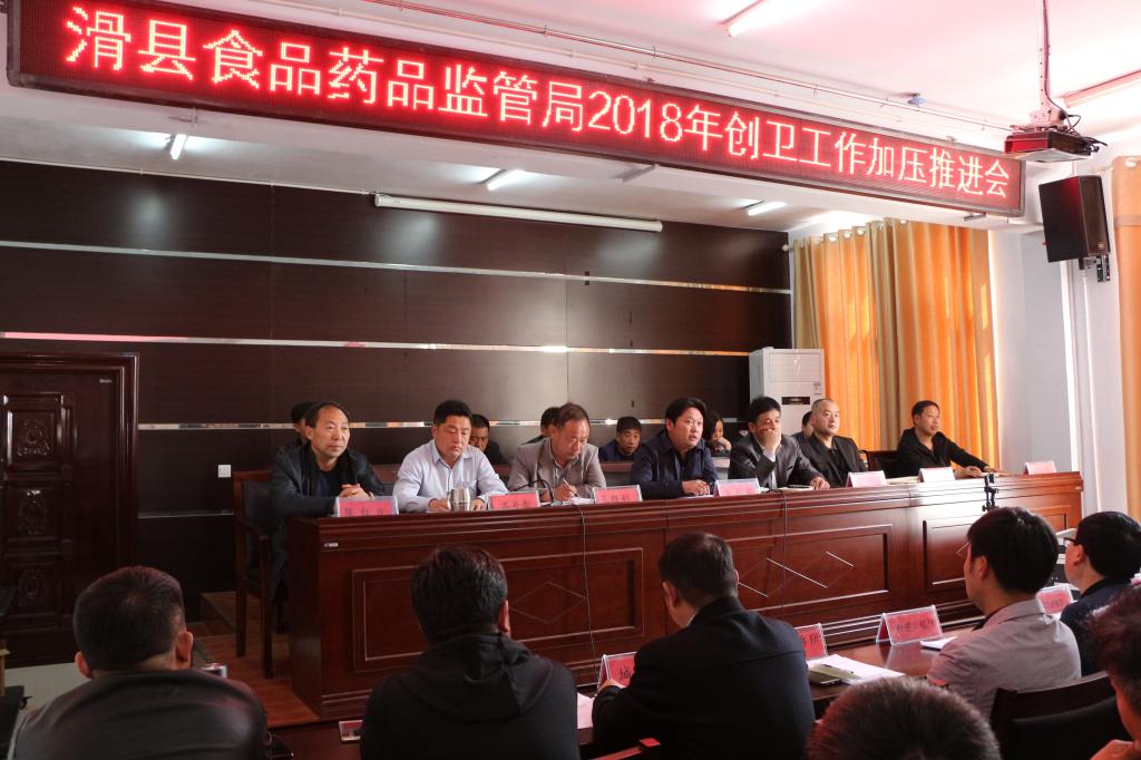 4月17日下午,县食药监局在局机关四楼召开2018年创卫工作加压推进会,全系统人员140余人参加会议。
