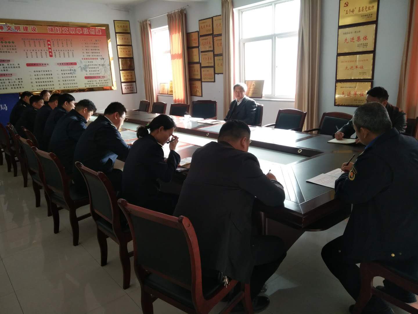 会议主要任务是总结前段创卫工作,分析研究当前创卫工作面临的严峻形势,加压增责,安排部署下步创卫具体工作。会上,一是传达了县创建国家卫生县城推进会会议精神,分析研究当前创卫工作面临的严峻形势和存在的具体问题;二是对县“创建国家卫生县城指挥部”交办的创国家级卫生县城具体工作任务再次进行了细化和具体交办,明确任务完成的时间节点、承办部门和具体承办责任人;三是突出重点,狠抓落实,重点落实在八个方面:市容市貌的治理、烧烤油烟治理、道路保洁清扫、公厕保洁管理、环卫保洁投入、渣土扬尘的监管、户外广告管理、城区非机动车乱停乱放;四是对当前有关创卫工作进行了具体安排和部署,明确提出了“加压增责,坚决打赢创卫攻坚战”的奋斗目标,要求全局上下团结协作、奋力拼搏,确保按时间节点高质量完成创卫各项工作任务;五是对创建工作实行跟踪问效,制定奖惩办法,严格实行奖惩,强力推进创卫工作的扎实有效开展。