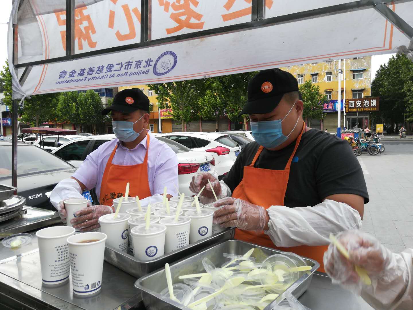 奉粥前,志愿者们跟随河南文心心栈的老师们做仁爱手语操,宣读爱心宣言,接受奉粥培训。奉粥中,志愿者们面带微笑,双手奉杯,腰弯30度,在为过往群众、环卫工人和孤寡老人送上一杯杯爱心粥的同时,也为他们送上了“早上好,给您送上一杯爱心粥,祝您一天好心情”的暖暖祝福。