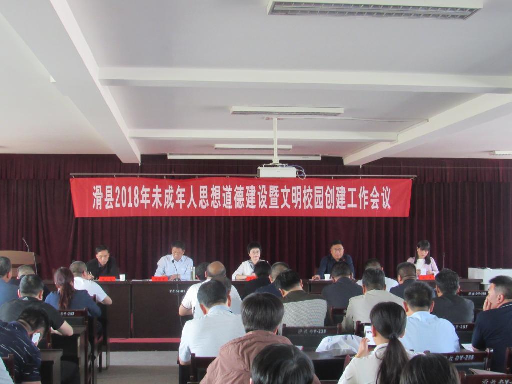 近日,滑县2018年未成年人思想道德建设暨文明校园建设创建工作会议在教体局五楼会议室召开。各乡镇中心校长、局属学校校长、城区中小学校长、县级文明学校校长等人员参加了会议。县文明办、县教体局等主要领导出席会议。