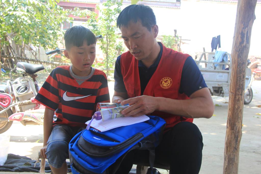 留守儿童多与爷爷奶奶一起生活,缺失了来自父母的关爱和教育,为了让他们感受到来自社会的关爱。志愿者们为孩子们送去了书包、文具盒、彩笔、雨伞等节日礼物,并与他们进行亲切交谈,询问他们近期学习生活情况,辅导他们学习,解决学习难题,鼓励他们多读书、多运动,乐观进取,积极面对困难逆境飞翔。活动最后,志愿者为孩子们换上了爱心人士捐赠的干净衣服,并与他们合影留念,孩子们脸上露出了久违的笑容。