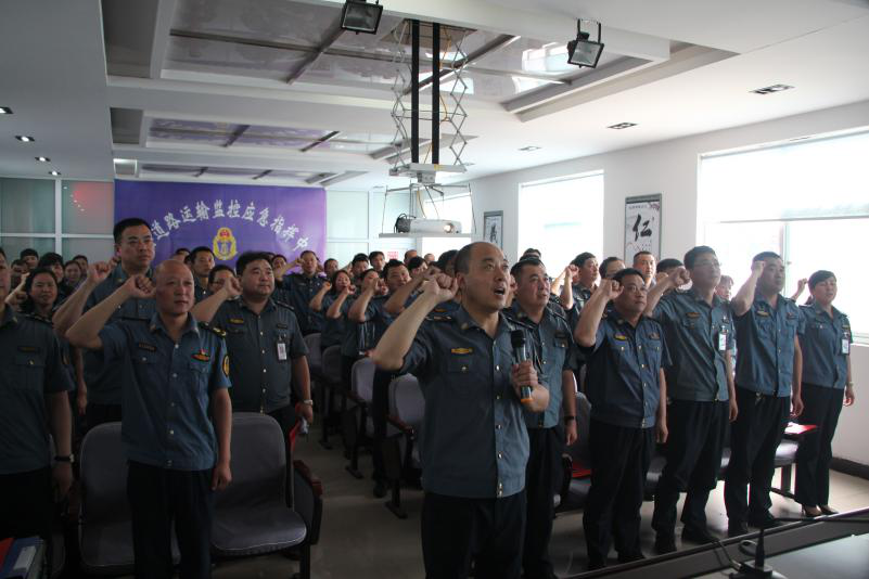 执法人员在庄严的交通执法徽下郑重的举起右拳,许下 “清正廉洁、敢于担当、配合密切、依法行政”的铮铮誓言,全体执法人员现场签订了诚信执法承诺书。