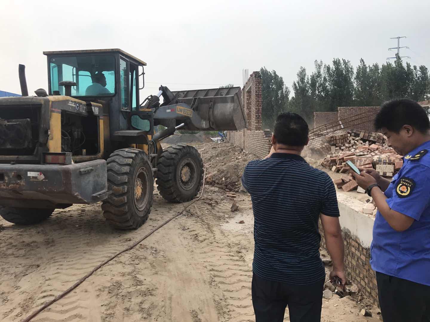8月2日下午,滑县城市管理综合执法局组织20余名执法人员、4辆执法车,对道口镇北环路与工贸路交叉口一处约500余平米的违章建筑依法强制拆除,进一步打击了违建势头。