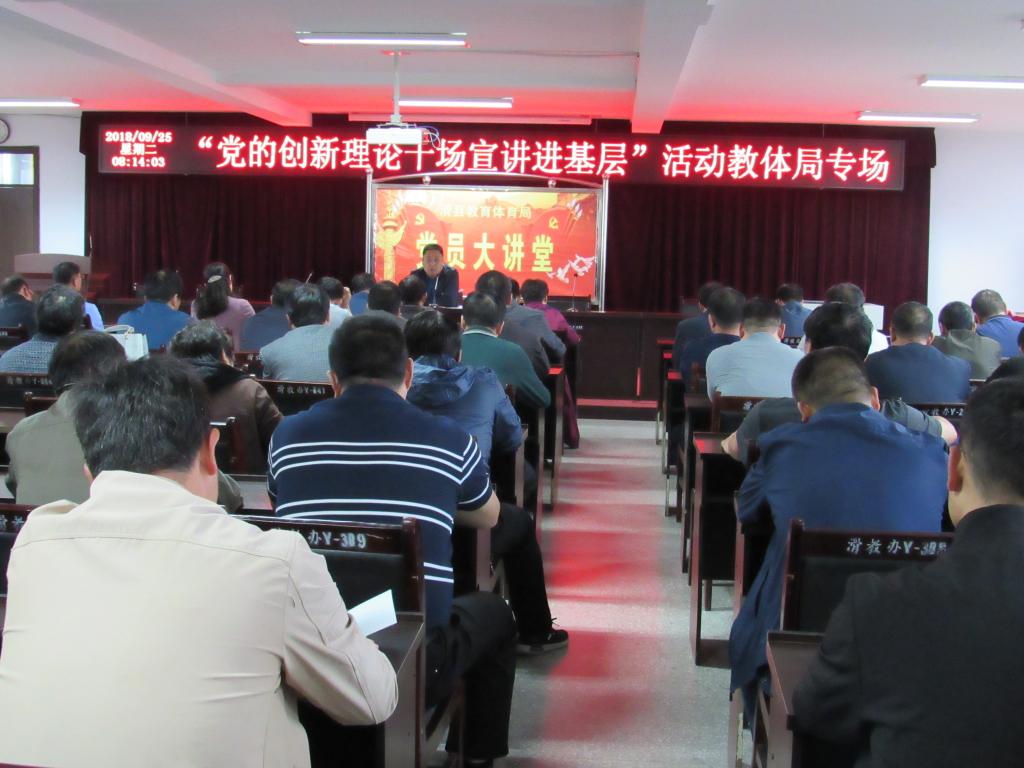 9月25日上午,教体局举行了新一期“党员大讲堂”活动。本次党课以“奉献、服务、健康、快乐”为主题展开,局机关及二级机构全体人员参加了学习。