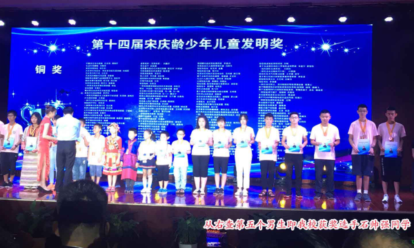 8月24至8月28日,第十四届宋庆龄少年儿童发明奖展评活动在湖南长沙隆重举行。“宋庆龄少年儿童发明奖”是经国家科技部批准、唯一以国家领导人名字命名的青少年科技创新奖项。其评选过程依照“新颖性、创造性、实用性、参与度”的标准,本着“公平、公正、公开”的原则,通过地方筛选、网上申报、网上初评、现场展评四个环节进行选拔。本次活动中初中组入围作品共90件,我县道口镇第三初中选送的地震报警器和自助甩干机两件作品有幸入围终评,两位选手在展评现场经过公开展示和认真答辩,最终获得一个银奖和一个铜奖,这是河南省仅有的两个初中组入围且获奖的作品,两位选手作为河南省唯一的初中组代表队两次上台领奖。