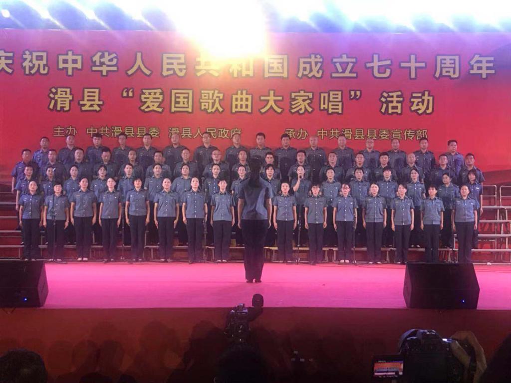 为参加好此次比赛,展现滑县交通运输系统干部职工的良好精神面貌,局机关积极筹划,精心组织,组建成68人合唱队,副局长王汉洁等党组成员带头参加比赛,多次加班排练。在8月28日晚上的比赛中,职工们以激情饱满的精神状态,唱响我们伟大的祖国,歌声嘹亮冲破云霄,久久地环绕于体育场上空,充分展现出了属于我们交通人的风采,赢得了观众热烈的掌声,最后取得了95.78分的优异成绩,有望进入决赛。
