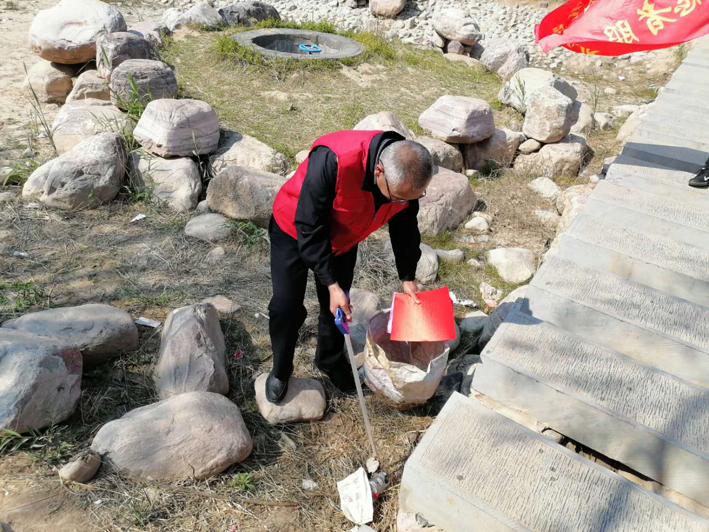 在劝导游客文明游玩、商户文明经营的同时,志愿者们通过分组、分片捡拾未及时清理的垃圾杂物和地面小广告等,引导游客既当旅游者,又当文明的宣传者和践行者,强化文明旅游意识,传递社会正能量。