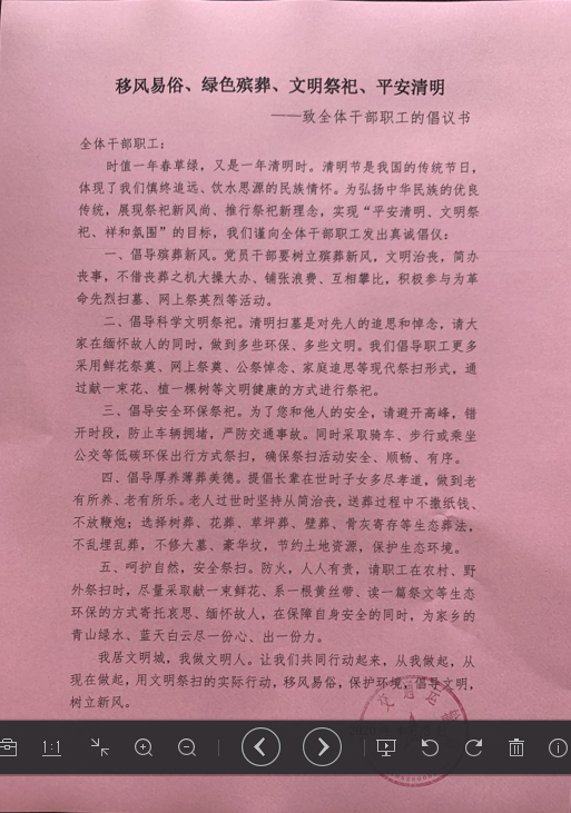 通过活动的开展,树立了文明悼念祭扫新风尚,促进了社会和谐,进一步提高了广大居民的现代文明意识,营造了生态、平安、和谐的良好环境。