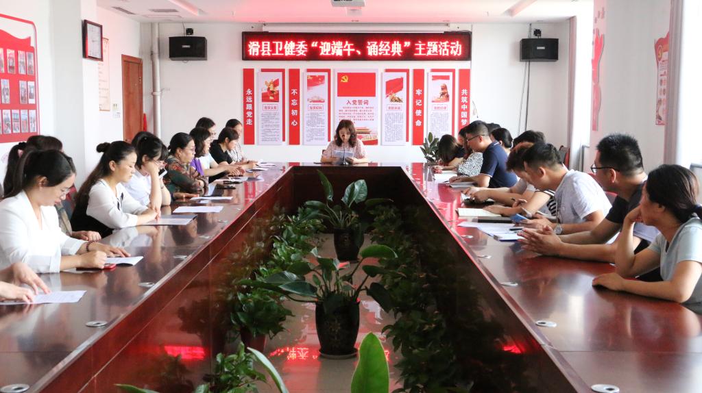 为迎接传统节日——端午节,更好地传承和弘扬中华民族传统文化,激发爱国热情,积极培育和践行社会主义核心价值观,进一步丰富干部职工的精神文化生活,6月24日上午,滑县卫健委举办了“迎端午、诵经典”活动。