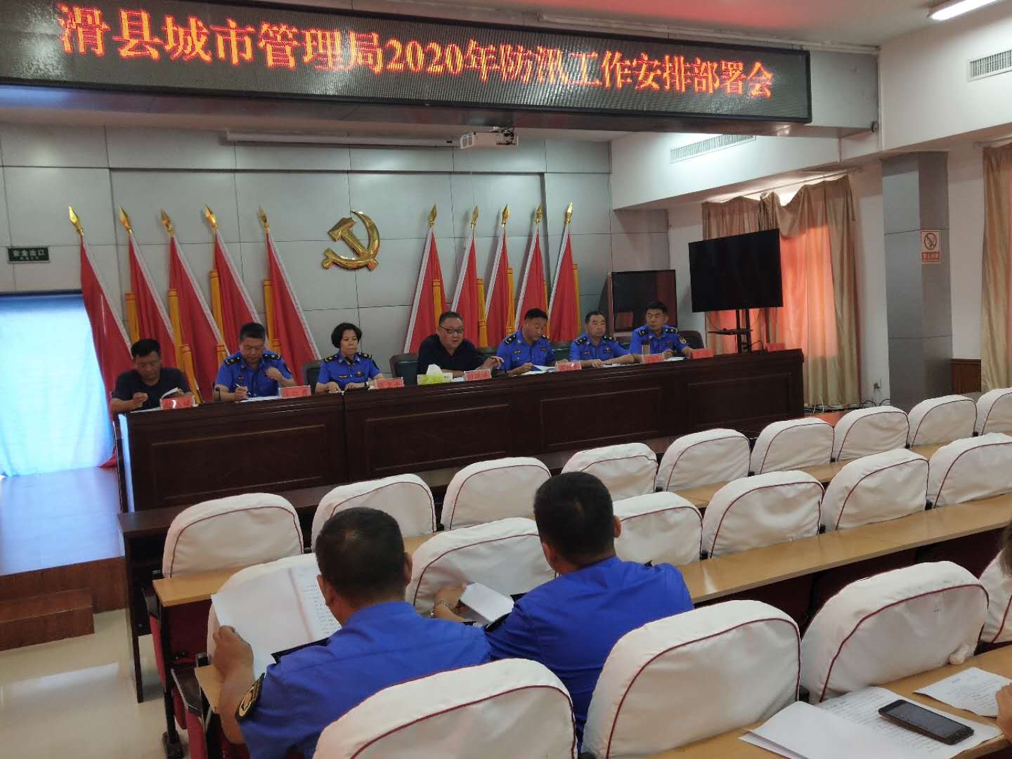 一、提高站位,认清形势。7月10日下午,滑县城市管理局召开防汛工作部署会,局领导班子成员、各部门中层副职干部以上人员参会。会上,局党组书记、局长刘现涛首先就今年主汛期城市防汛工作进行再动员、再部署。要求各部门提高站位,充分认识防汛的严峻形势,坚持以防为主,全力以赴做好防汛各项准备工作,打好防汛主动仗。会后,各部门迅速传达会议精神,部署防汛工作,全员到岗到位,落实会议要求,做好防汛工作全面备战。