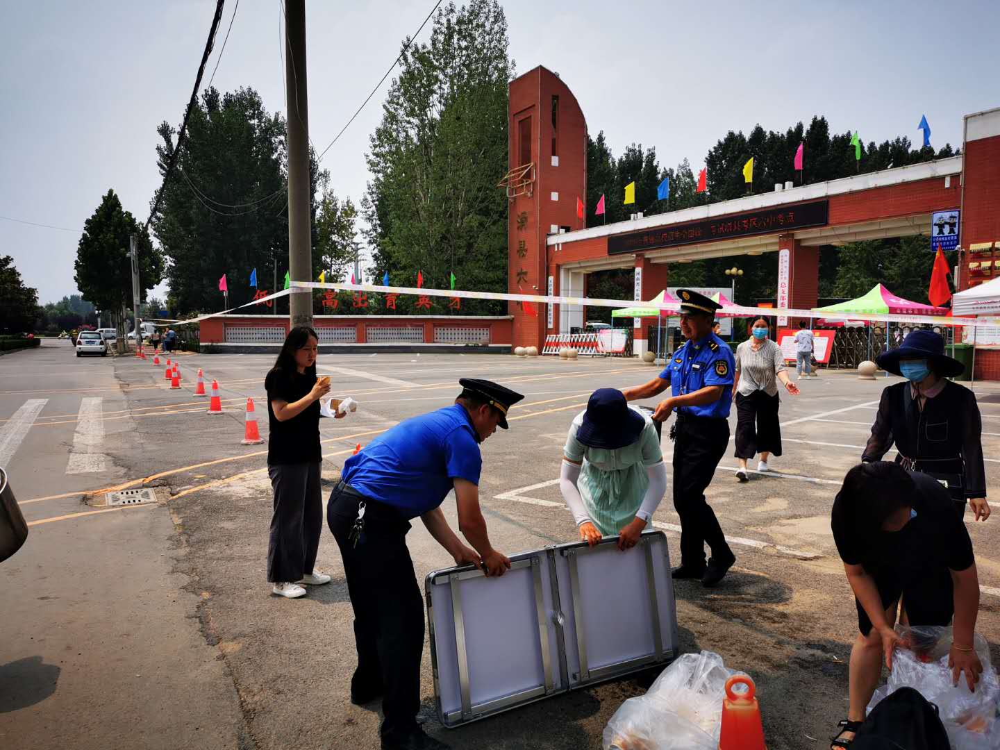 高考的两天,为给广大考生营造一个安静、和谐的生活、考试环境,不到6点,在县城区各高考考点外,滑县城市管理局的城管执法队员就已经全员早早到岗,尽心尽力做好护考工作,保障高考顺利举行。