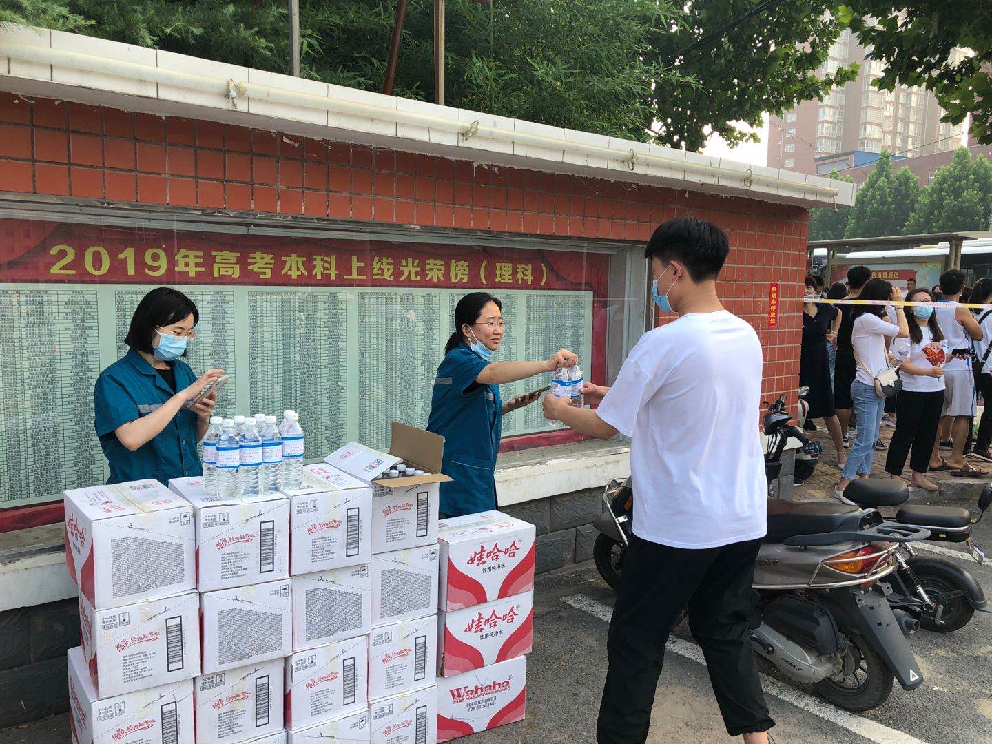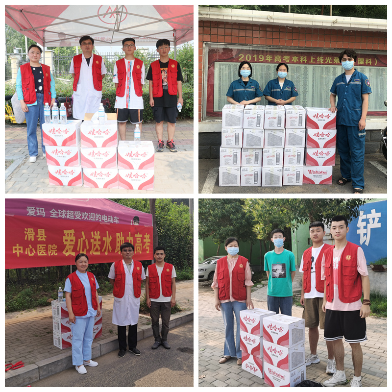 在考试前,考虑到天气炎热,饮水需求量大,提前准备了大量助考矿泉水,供考生和家长们饮用。两天的考试,滑县中心医院五官科的医务人员每天都是一大早就专门到考点设立助考站点,爱心送水,助力高考。并在现场为考生、家长和工作人员提供医疗服务保障,给考生和陪考家长夏日送去一份及时的清凉与关爱。
