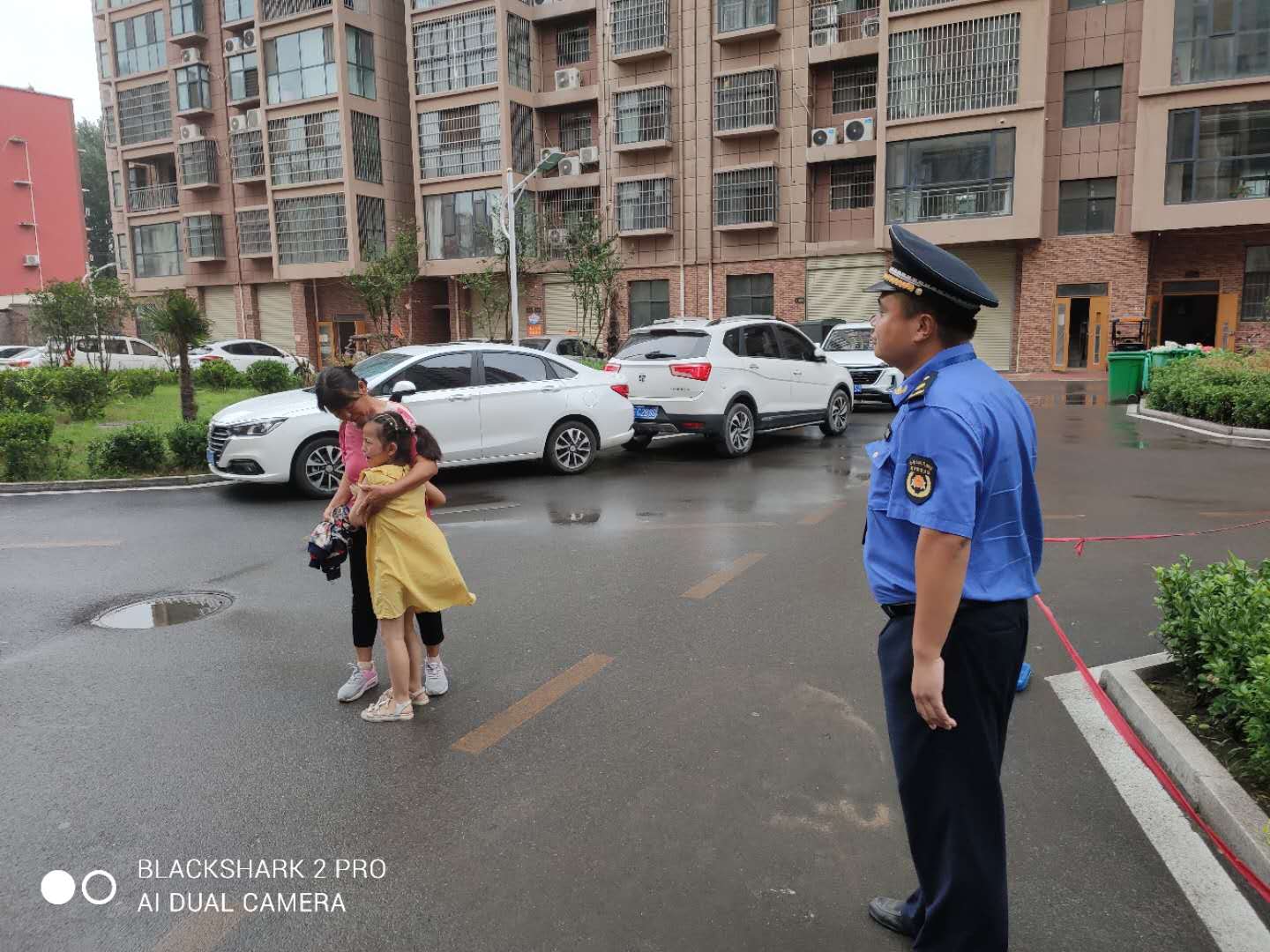 近期,滑县遭遇连续降雨天气,滑县城市管理局市容管理第三执法大队副队长李东东正带领队员邢计伟、郑森垚、杜鑫蕾在辖区防汛巡查时,在蔚然国际小区北口发现一名六七岁左右的女童站在雨地里哭,也没打伞,浑身都淋湿了,执法队员赶紧下车走到女童面前,小心安慰并耐心询问怎么回事?女童一边哭一边说:“是自已下了补习班,其他小朋友都走了,自已没人接,平时都是爷爷接她,今天天气不好,等了好久一直没人来接,就想自己走回去,可是找不到回家的路,迷路了”。