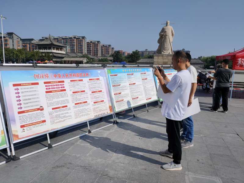 设立法律咨询服务台,向广大人民群众讲解《民法典》法律知识。用通俗形象的例子、浅显易懂的表达,介绍了民法典编纂、修缮和颁布的历史过程,强调了民法典是新时代我国社会主义法治建设的重大成果,是一部固根本、稳预期、利长远的基础性法律。