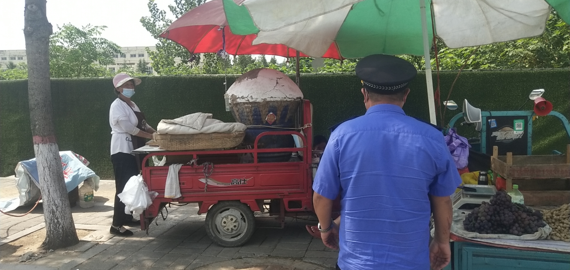 执法人员坚持以疏导教育为主,在疏散流动摊贩的同时,提醒流动摊贩正确佩戴口罩,并宣传疫情防控知识和城市管理相关法律法规,引导流动摊贩自觉遵守相关规定,提醒群众,购买物品时保持一米间距。