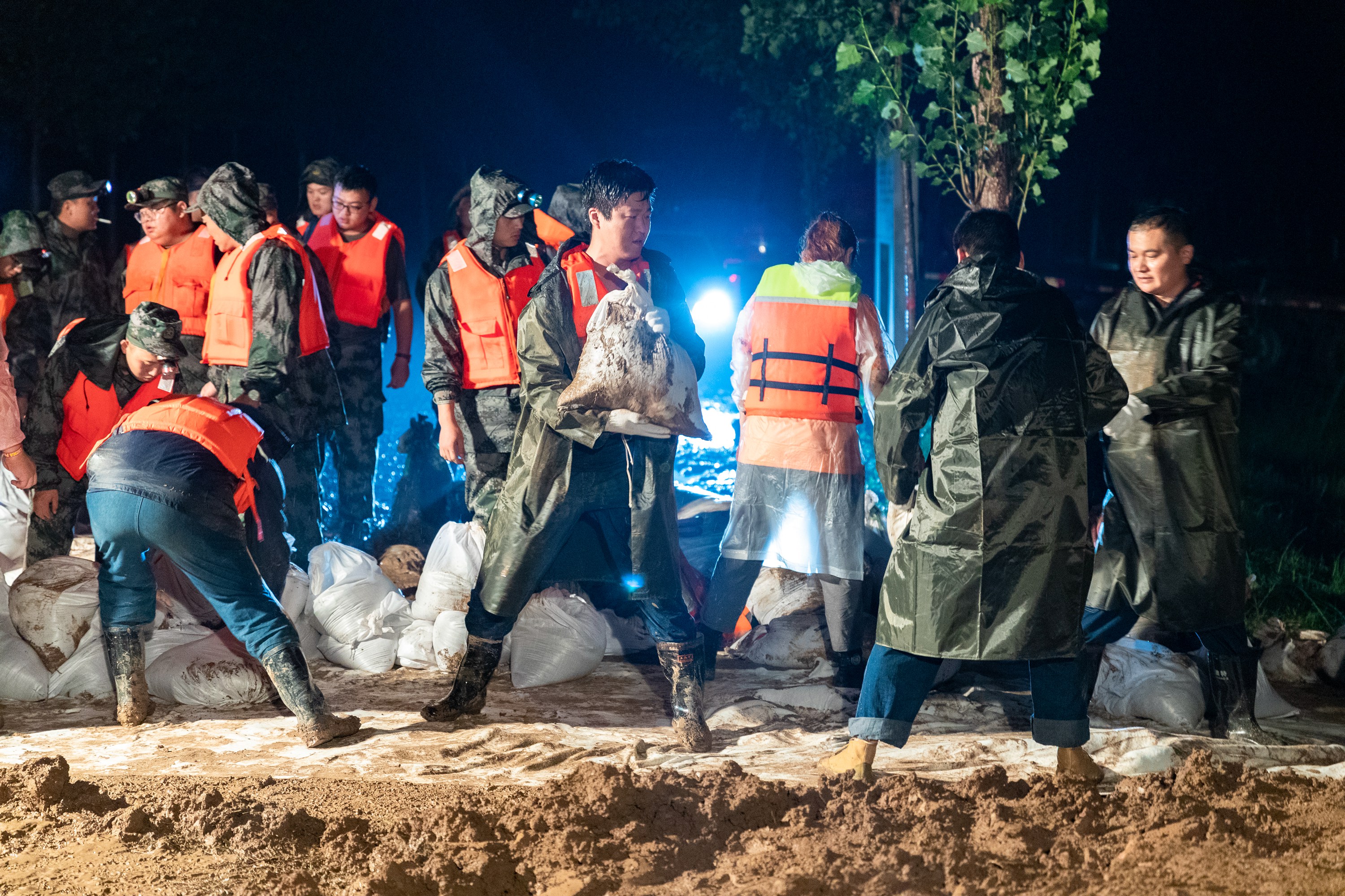 河南大部分地区普降大雨暴雨,黄河、淇河、卫河等多条河流相继发生了大洪水,受灾人数多,地域广。2021年7月23日凌晨1时,就在世界文化遗产中国大运河滑县段的卫河大桥东岸河堤出现管涌。国网滑县供电公司防汛抢险队17名队员在该公司副总经理杨明明、岳凯带领下,与当地民兵、水利、公安等部门共同努力抗洪抢险,持续奋战7个小时,有效封堵了管涌现象,减缓了险情。