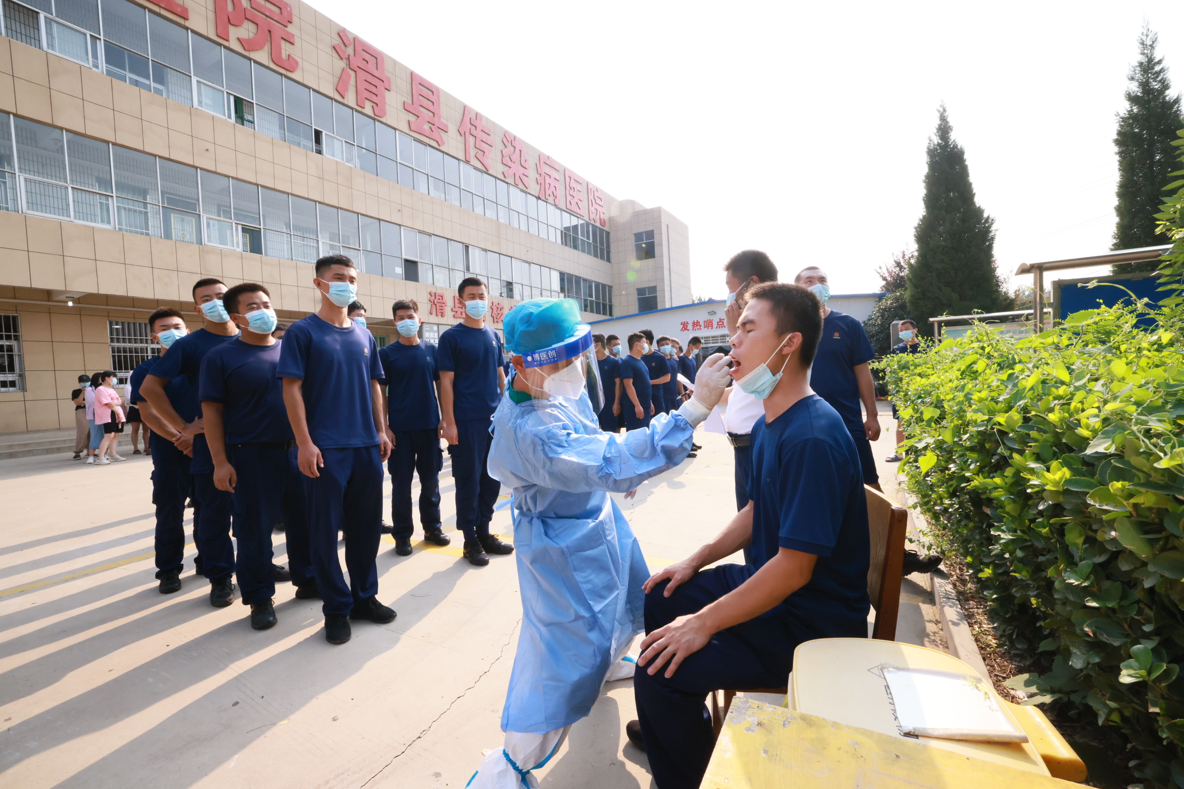 县中心医院对滑县消防救援大队进行核酸检测
