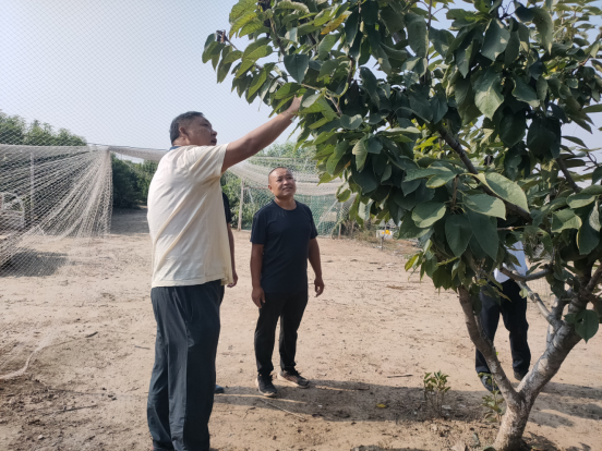 9月15日,安阳市森防站站长苏山玉、高级工程师李秋生等一行人到滑县小木屋果树家庭种植农场指导绿色防控示范区建设工作。