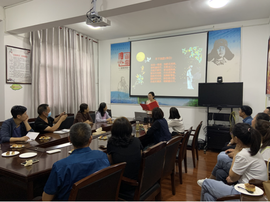话传统环节,两名同志通过展示PPT、播放视频等方式,向大家普及中秋节的由来、习俗,展现了中华传统文化的独特韵味和魅力。