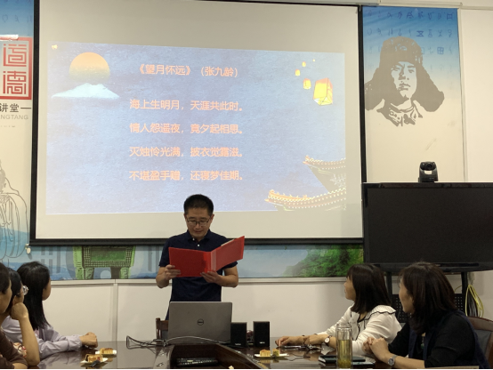诵诗词环节,大家声情并茂,或慷慨激昂,或娓娓道来,从不同角度 、不同侧面,抒发着自己对祖国的热爱和对中秋佳节的寄思之情,现场时不时爆发热烈的掌声。