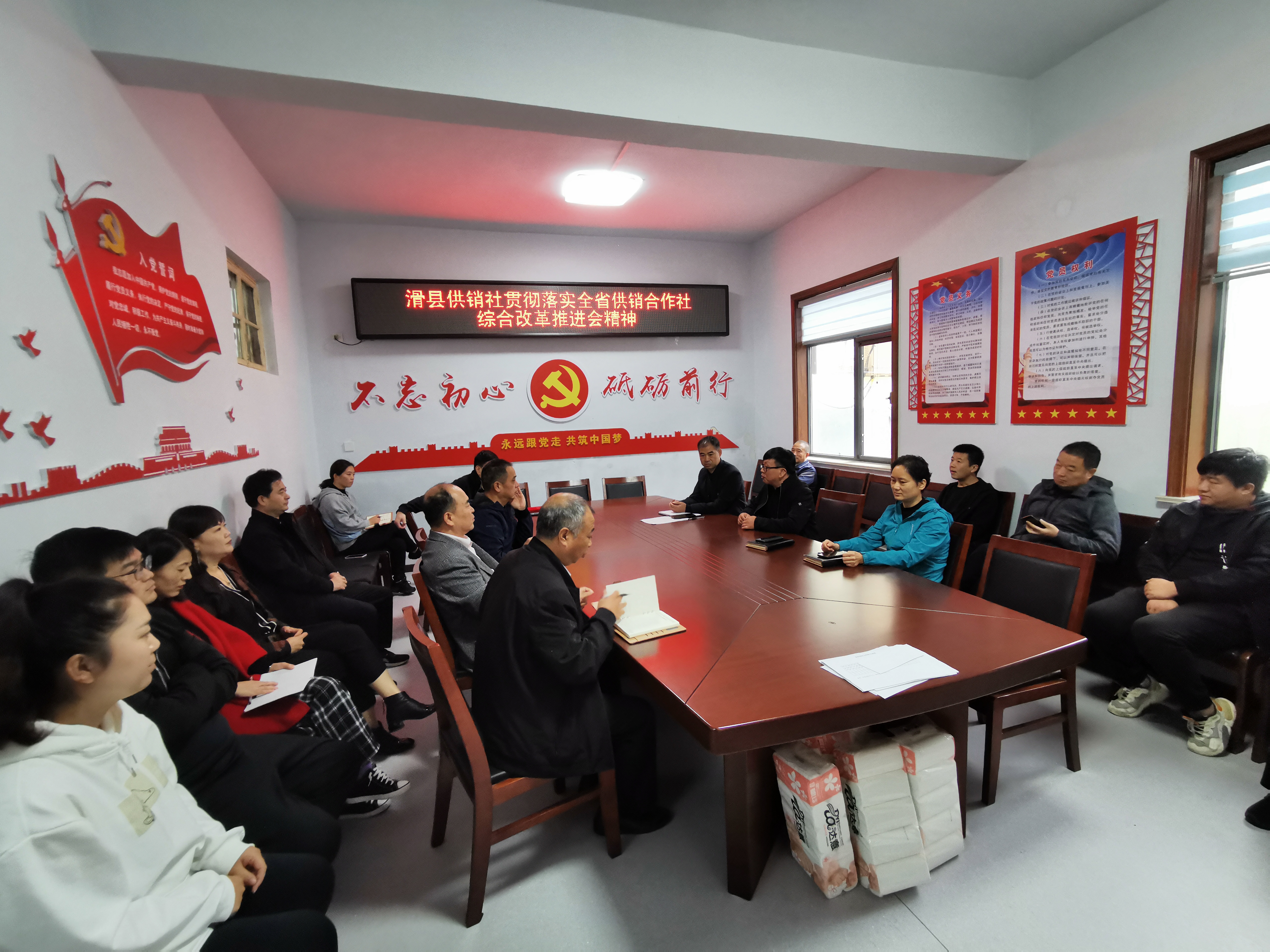 县社党组书记、理事会主任卢自成强调,统筹做好综合改革和经济发展各项工作,要完成好各项工作任务,确保系统经济运行平稳发展,为综合改革提供有力支撑。努力争先创优,以本职工作的出彩为供销社发展添彩,以供销工作的出彩为滑县发展添彩。