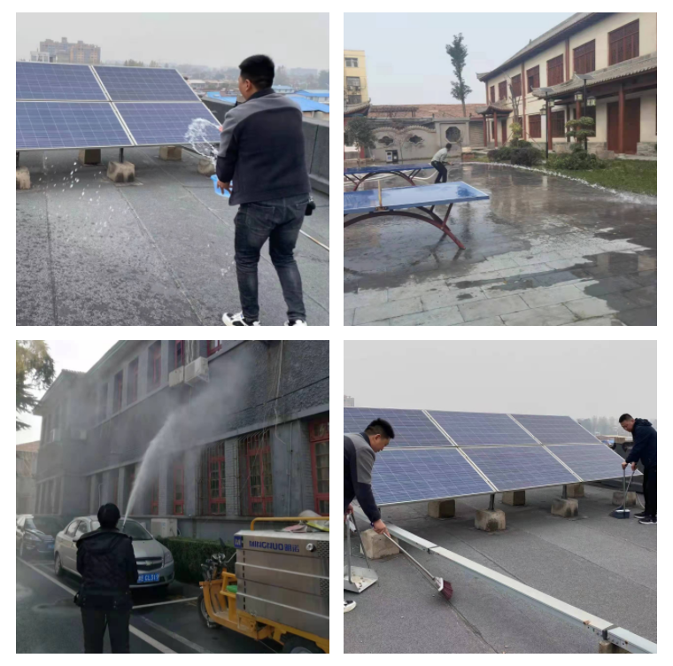 二是开展单位内部大扫除。城区内各行政企事业单位严格落实水洗标准,运用多种清洁工具,对楼房立面、院内道路、地面和绿化植物进行冲洗,扫净卫生死角,清理杂草垃圾。