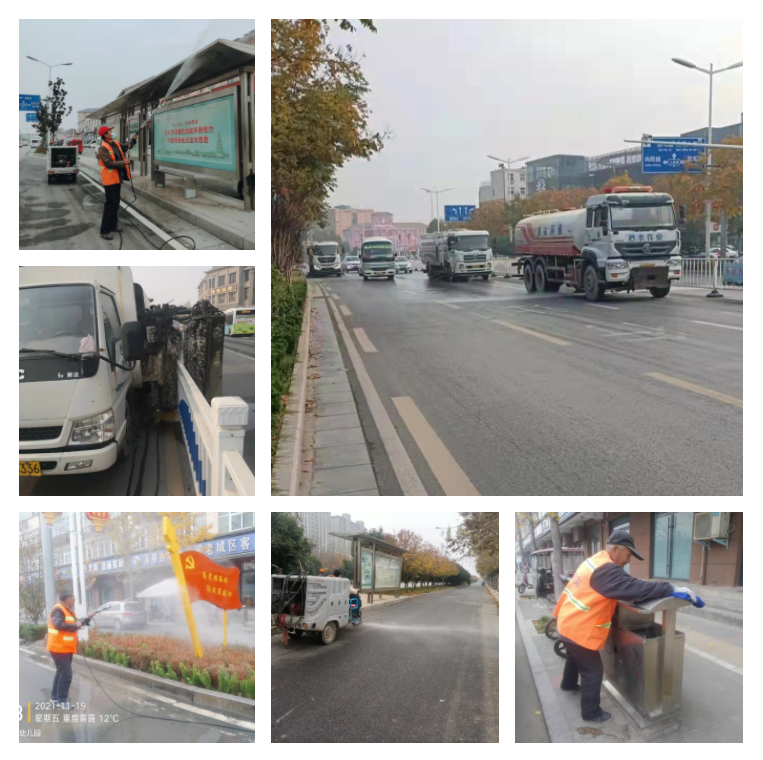 一是整治环境卫生。组织环卫公司出动洗扫车、洒水车、护栏清理车、路面养护车等各类作业车辆,机械结合人工作业,对全县主次干道进行全面保洁。落实城市道路清扫“双十标准”。