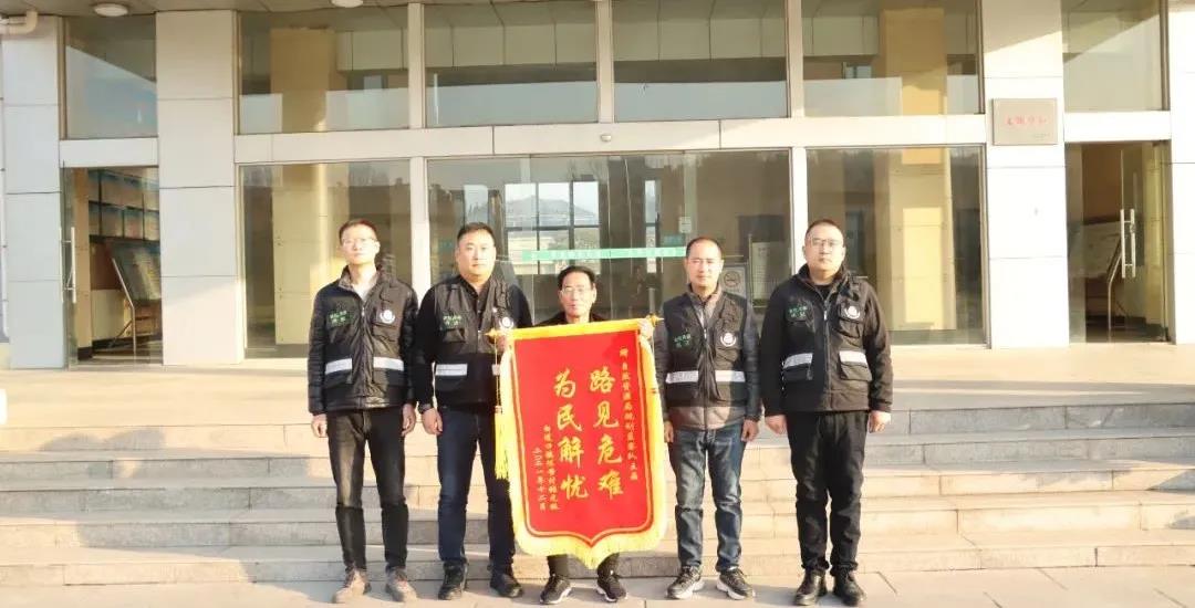 12月6日上午,白道口镇陈营村村民张元放,将一面印着“路见危难 为民解忧”字样的锦旗送到滑县自然资源局监察大队执法人员的手中。
