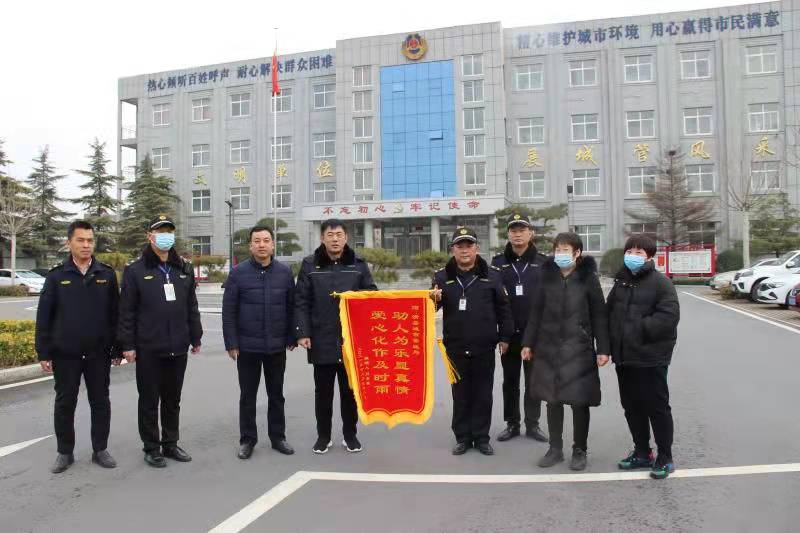 2021年12月31日下午,一面写有“助人为乐显真情 爱心化作及时雨”的锦旗送到滑县城市管理局,患者女士(现已治愈)表达12月12日在路边突发疾病,求助城管执法人员,第一时间将自己抬上执法车紧急送往医院治疗的感激之情。