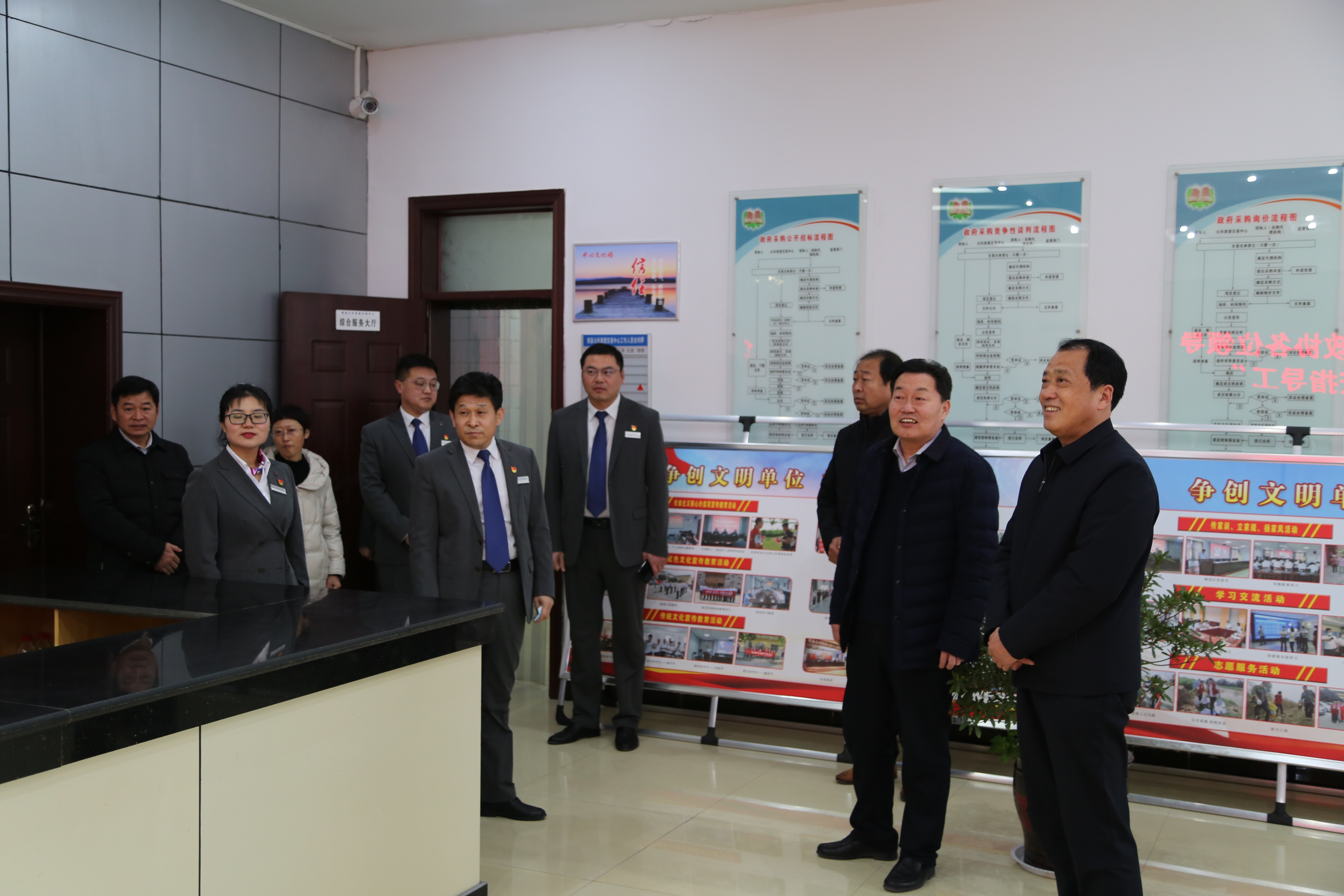 2月11日下午,县政协主席张绍体,副主席段其东,党组成员段社钢一行七人莅临县公共资源交易中心视察工作,中心党组书记、主任吕伟杰陪同。