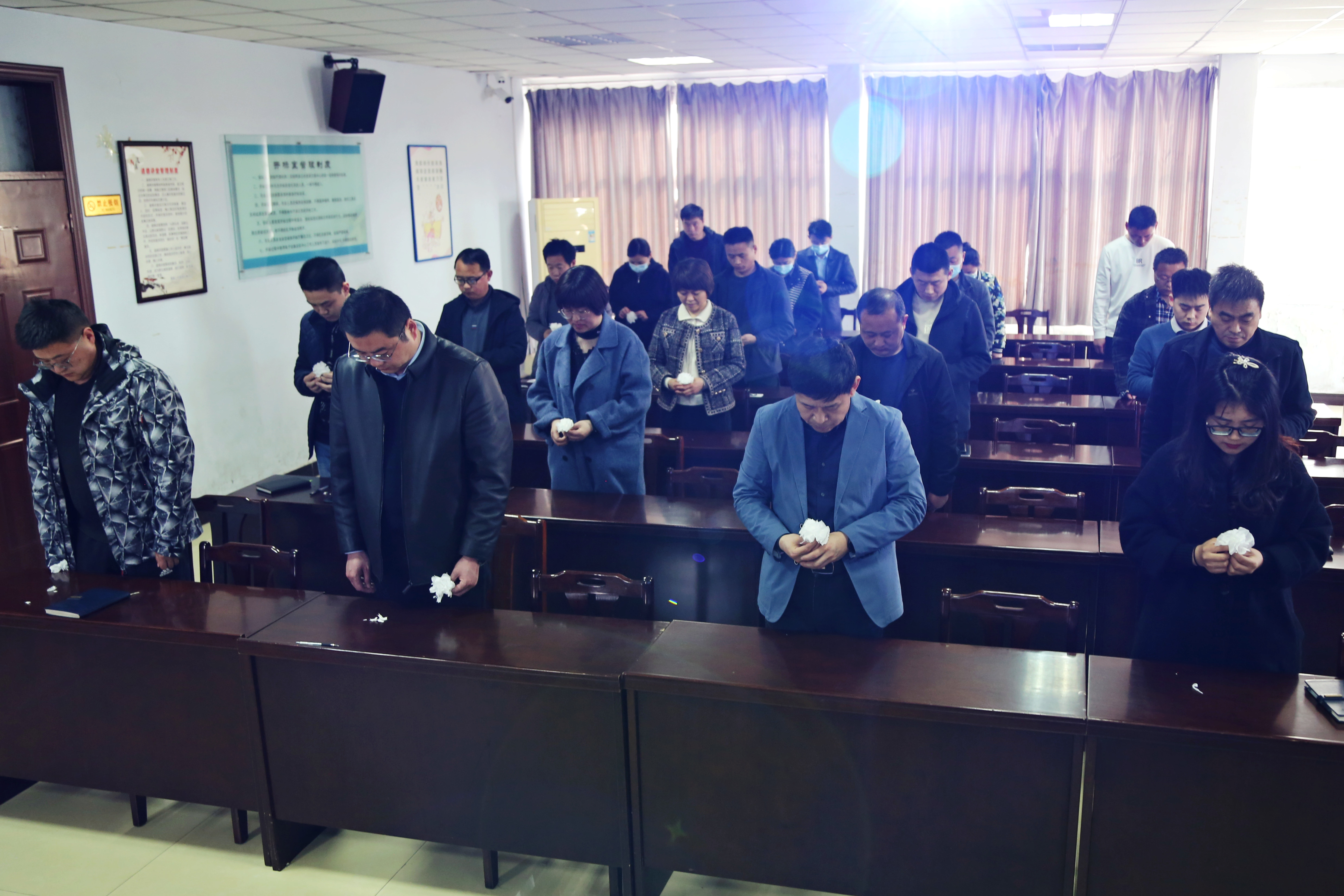 最后,中心干部职工全体起立,手持白花默哀,缅怀英烈、祭奠忠魂。此举不仅是追思和怀念,更多的是要继承和弘扬英烈精神,在心灵中播撒下火种,涵养浩然正气,接续英烈的美好夙愿,让英烈精神薪火相传。