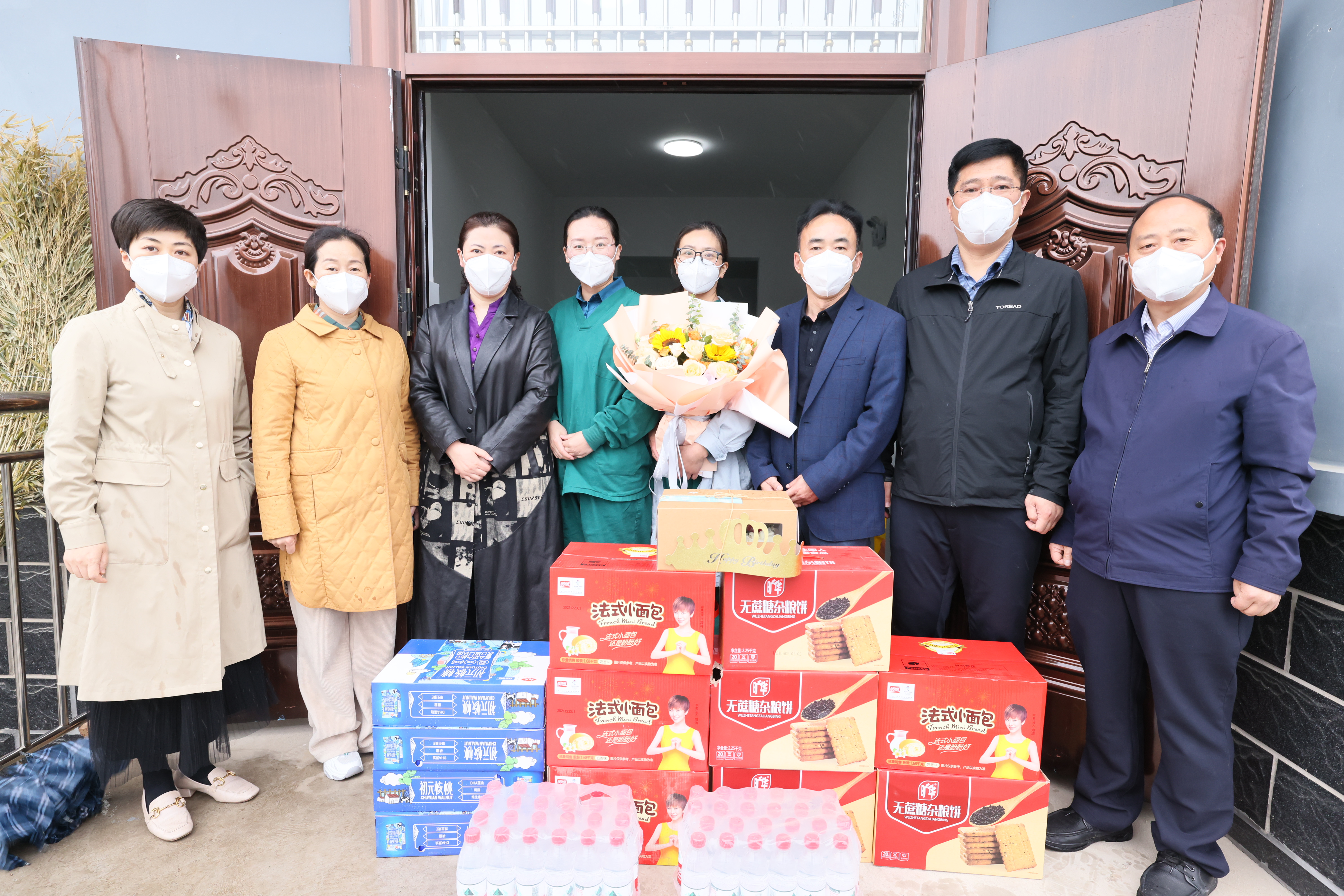 在滑安驿站中,滑县中心医院驻点的医护人员放弃了五一节假日,放弃了与家人的陪伴,舍小家为大家投身疫情防控。恰逢驻点医护董利彩、熊建华、李晓丹、任静、刘宁飞的生日都在五月份,5月9日,滑县中心医院副院长魏健、副院长陈光辉、副院长朱瑞林、医院党委委员张馨予、院工会主席张会遵、副院长谢佳威来到滑安驿站隔离点,给坚守在隔离点的“大白”寿星送上了鲜花、蛋糕和生日祝福。