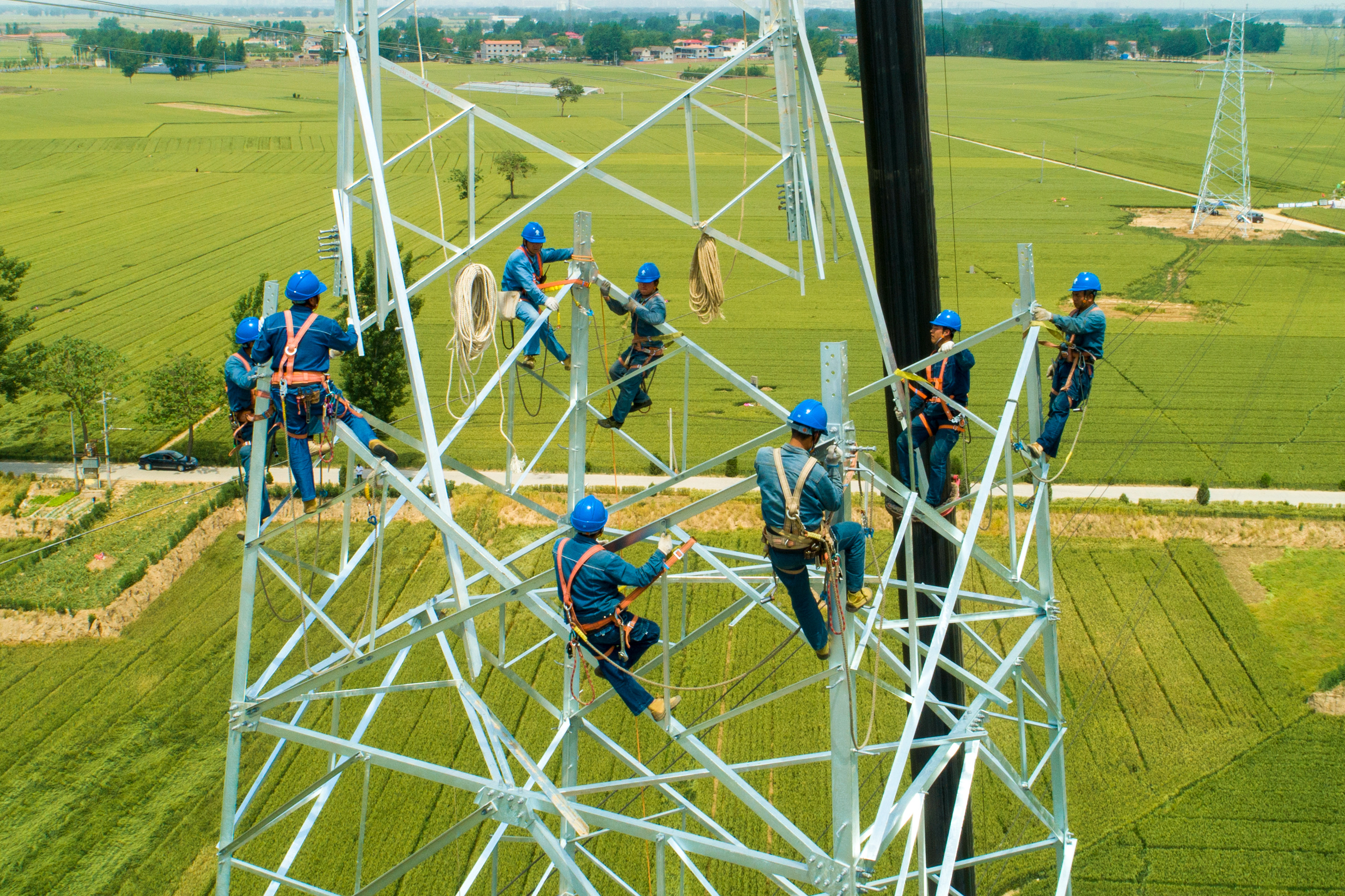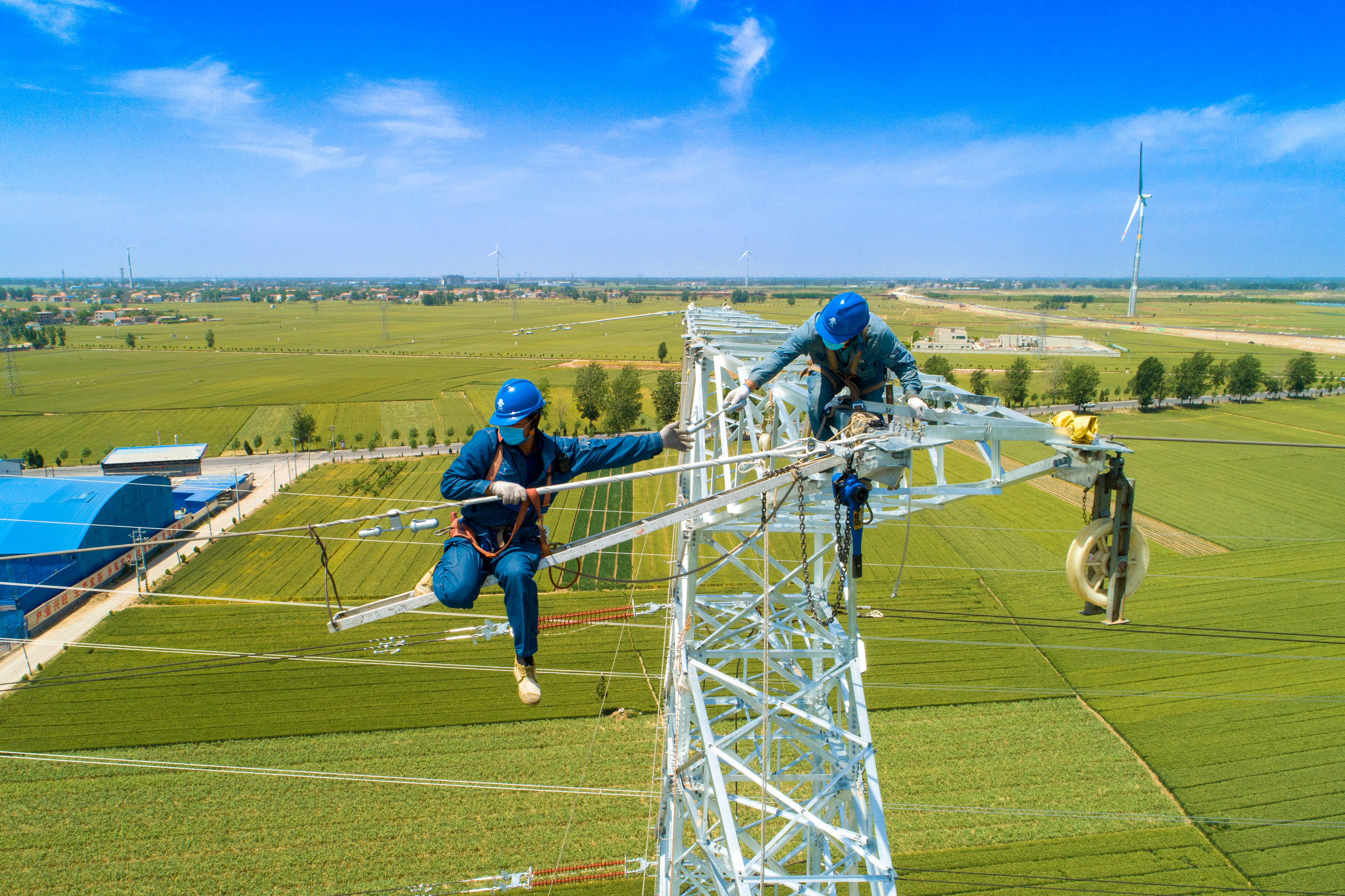 5月22日,在河南滑县上官镇东悦庄村濮卫高速公路旁,国网滑县供电公司组织44名电力工人对220千伏滑蓝线路42号至45号杆实施迁改作业。
