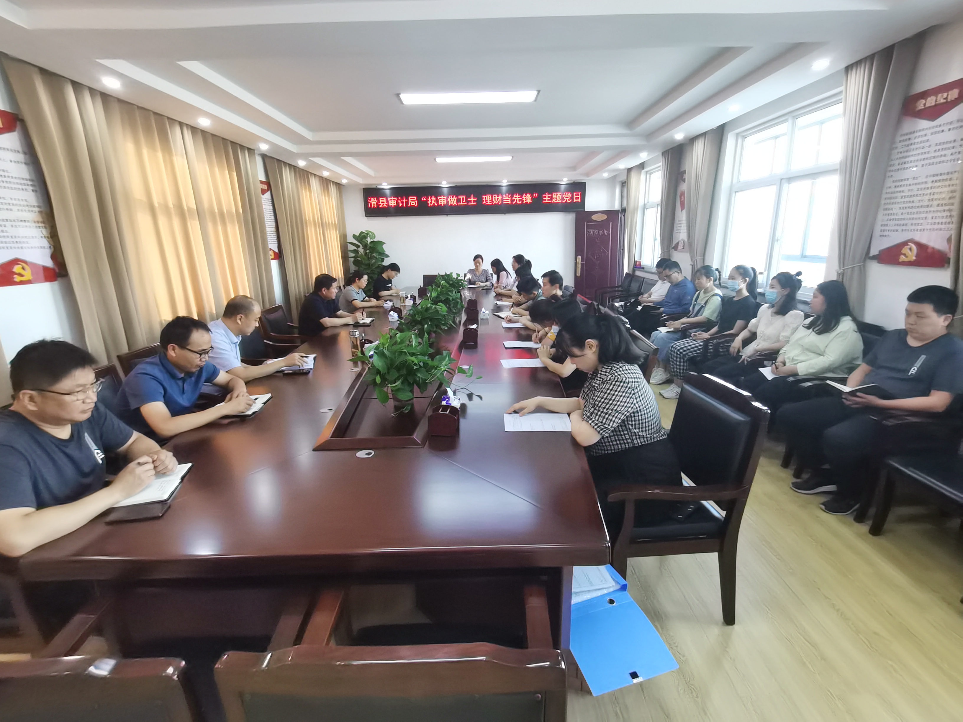 6月10日,滑县审计局为不断促进党建品牌创建工作深入开展,使党建工作的方式方法更加科学、更加富有生机和活力,组织开展“执审做卫士 理财当先锋”主题党日,活动由审计局党组书记董向锋主持,审计局全体干部职工参加。