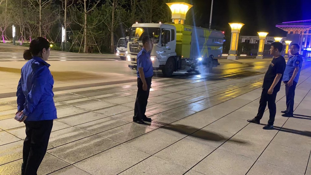 截至目前,累计出动机扫车65台次,高压冲洗洒水车60台次,小养护冲洗车124台次,清洁工300余人次。