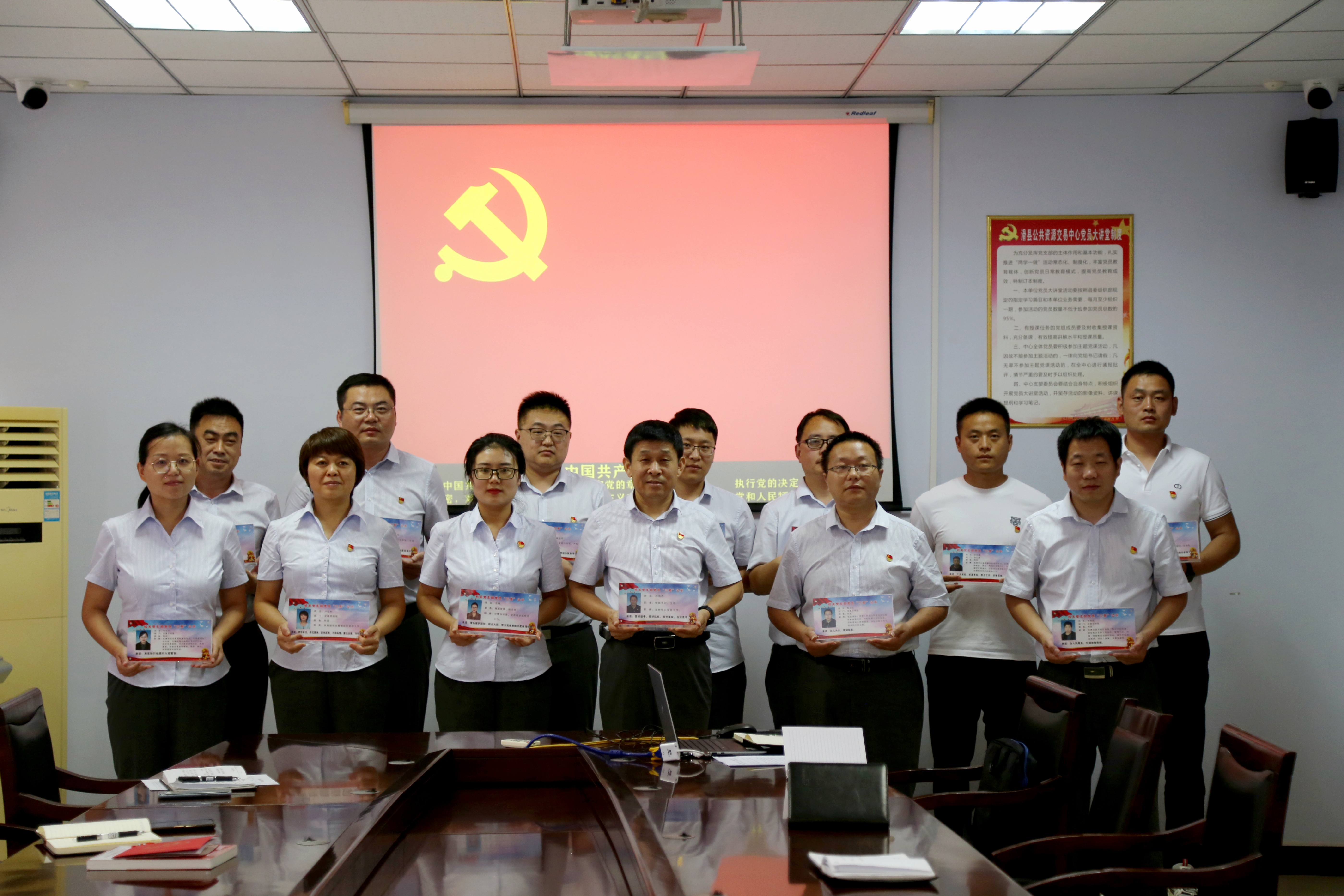 亮一次党员身份 为进一步凝心聚力、焕发意气,更好地践行初心、担当使命。中心党组成员、副主任王琳为全体党员干部颁发了包含身份、职责、承诺等信息的机关党支部党员“三亮”公示牌,以充分激发党员干部发挥先锋模范作用。实行党员亮身份制度,就是要让党员亮身份、明责任、作表率,以“合格党员”的标准严格要求自己,自觉接受群众监督,树立党员干部的先锋形象,做到平时工作干在前,困难时刻站在前,危急关头冲在前,服务群众想在前。