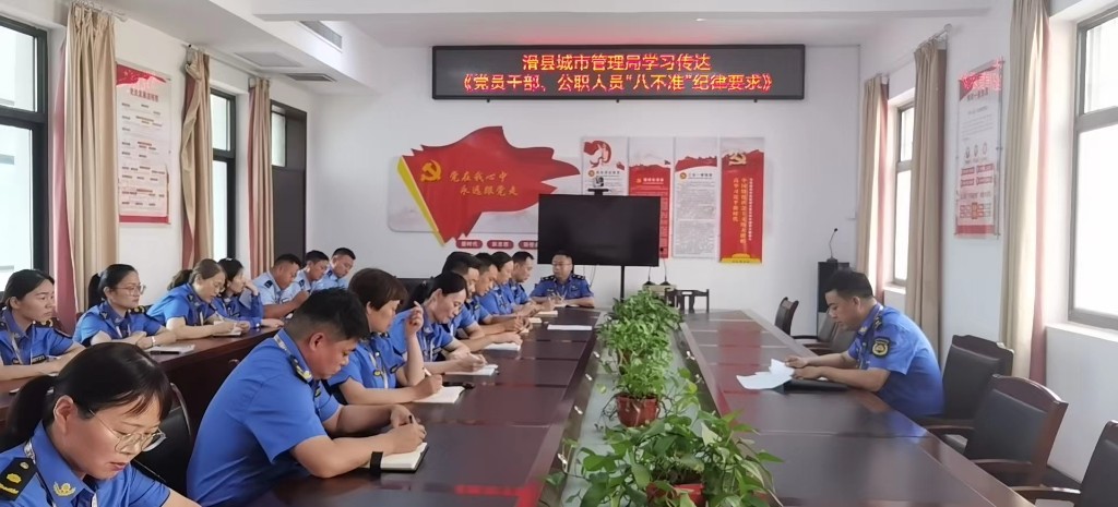 7月4日上午,滑县城市管理局组织召开专题会议,传达学习全县“能力作风建设年”活动加压推进会精神,组织学习《党员干部、公职人员“八不准”纪律要求》《关于六起作风突出问题典型案例的通报》,局全体班子成员参加会议。