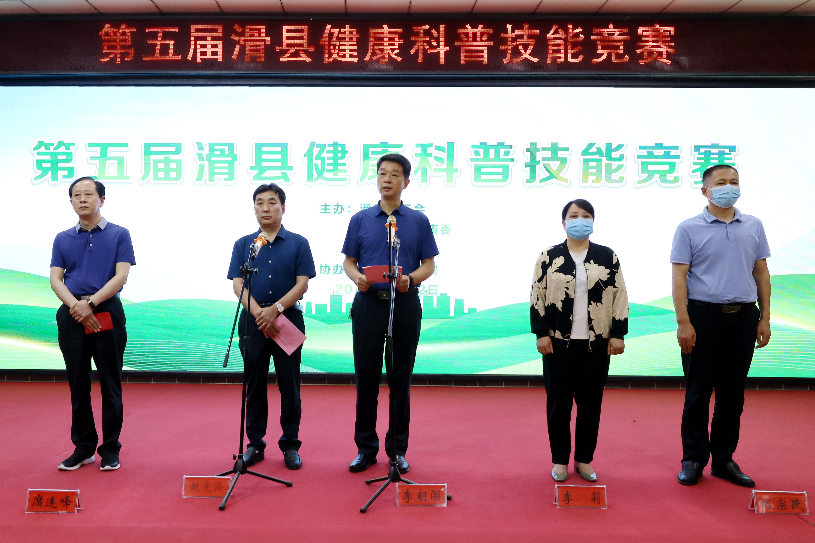 为深入落实“健康中国行动”要求,鼓励我县医务工作者积极发挥普及健康知识的引领作用,展示我县健康科普能力和风采,落实“我为群众办实事”实践活动和推动健康知识普及,7月12日,第五届滑县健康科普技能竞赛决赛在滑县中心医院成功举办。全县各医疗单位通过选拔共有18名医务人员参加决赛,现场邀请了县卫健委、县直医院的领导和专家担任评委。滑县县政府党组成员、产业集聚区管委会副主任李朝阁,滑县总工会常务主席李莉,滑县卫健委党组书记、主任赵宪海,滑县卫健委党组成员、副主任刘宗民,滑县中心医院院长席连峰出席会议。